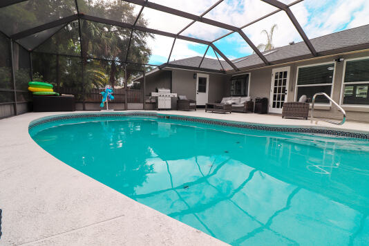 Family friendly home, Ready for you to come have fun and relax. This heated pool home Is set up with many outdoor pool accessories along with everything you need for the beach.